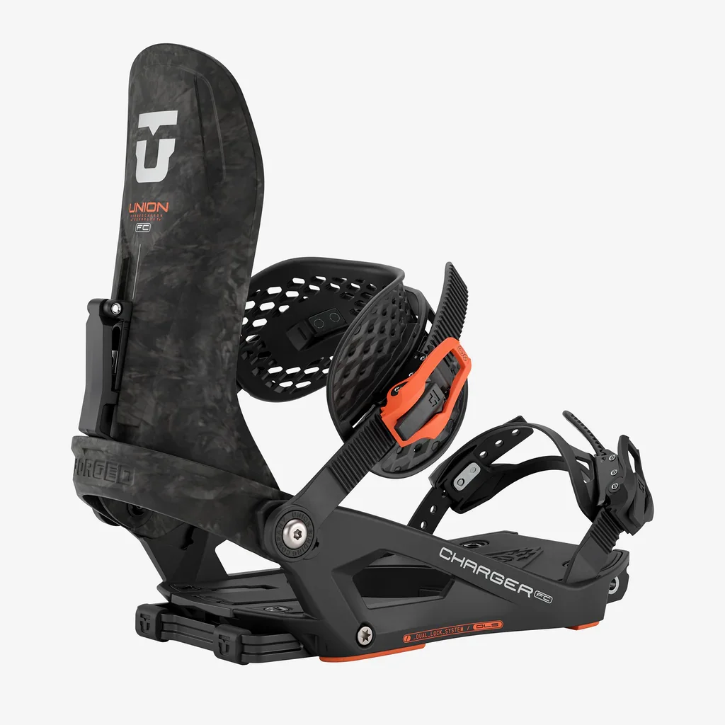 Similar to the K2, as in a good entry level binding that ride well if you want a softer relaxed feel. Union used to have a removable bar system for attaching the bindings to the board, which thankfully they’ve ditched on the newer models, as the bar would bend under pressure, often leaving you on a mountainside with a broken piece of kit. They now have a system similar to the Spark R+D for walk mode, and a pop on and twist for ride mode, which is a right pain if the board has ice or wet snow on it, although the twisting motion does clear the deck of less persistent blockages.