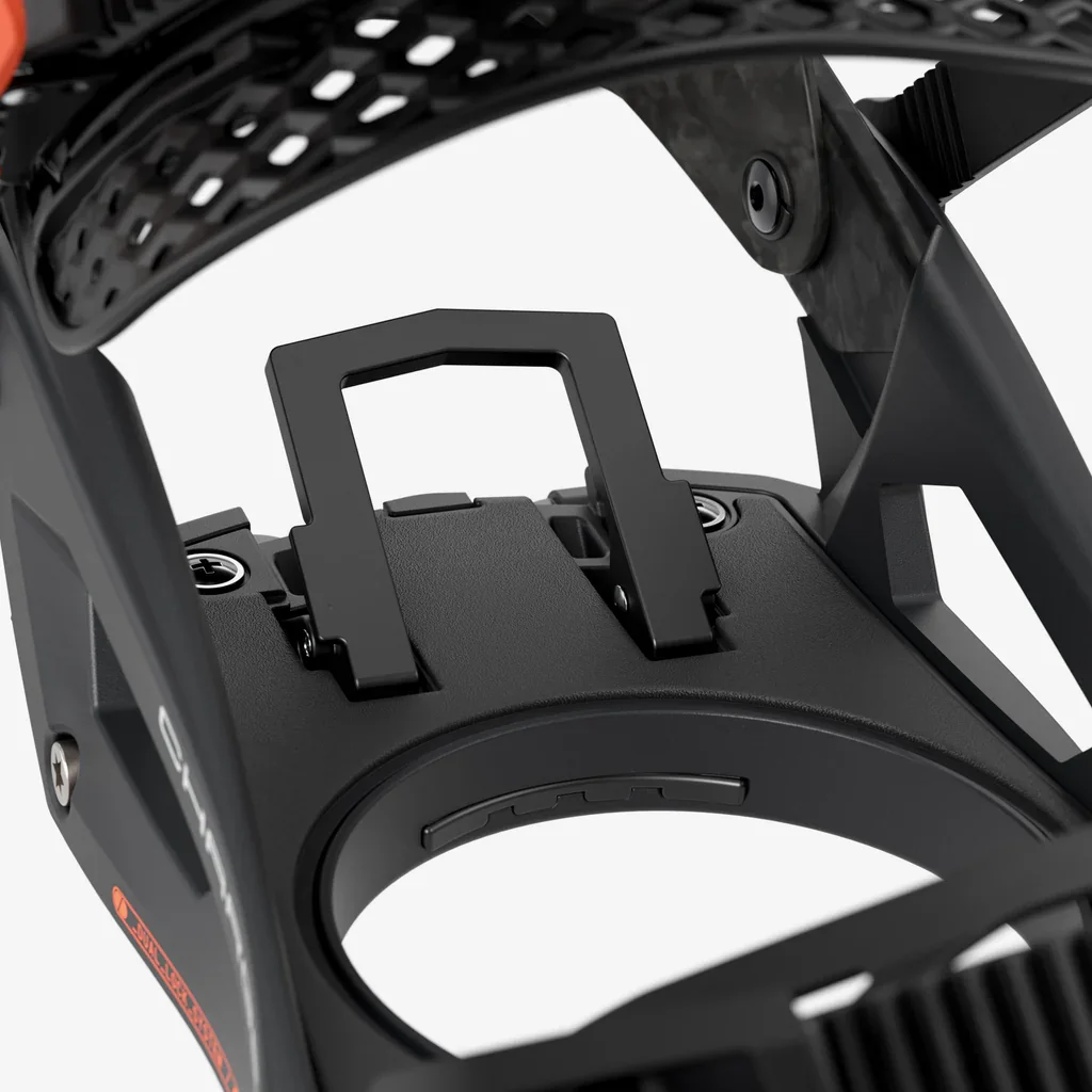 To skin, you have two hooks that stick out the front of the binding and attach somewhat awkwardly to a fixed bar, if I’m honest I’m not a fan, especially if you get ice under the bar. The backplates and straps are on the softer side and offer a chilled ride, perfect if you want to hit some jumps and ride powder, not the best if you find yourself in an icy couloir in the Arctic.