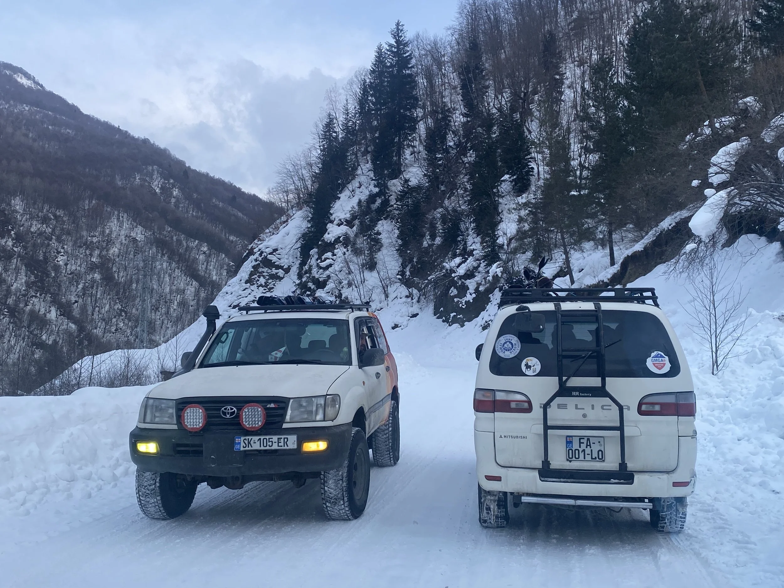 The Mestia Valley runs on Mitsubishi Delicas imported from Japan. A new tax has tripled the import fees on right hand drive cars but for now the Delica still rules the roads and you’ll be hard pushed not to get in one while in the valley. These little vans seemingly can’t be stopped, and will get you across rivers, through deep snow and to just about anywhere you want to go. Taxi drivers here have a bit of a reputation in the summer for changing prices, but in winter I’ve not had a problem, simply find out what a fair price is from your hotel owners or guide, and agree the fee before you set off. Most will take you up to Tetnuldi and then wait there all day to take you back down again.